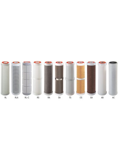 RL polyester ağ filtre: 50 mikron, (4”, 5”M, 5”, 7”, 10”, 20”, 30”, 40”, SX, BX, CX, AX) modellerdir.